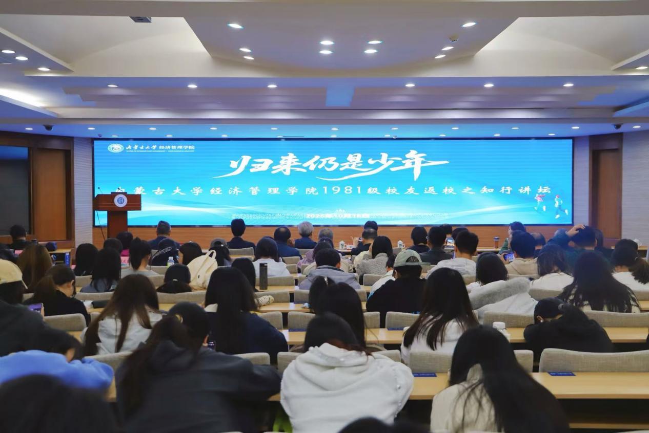 下午,1981级计划统计班校友返校系列活动之知行讲坛在赛罕校区学术会议中心8号会议室举行。讲座由内蒙古广播电视台首席记者、学院2004级MBA校友雷蒙主持。1981级校友、浙江大学研究员房汉廷,1981级校友、国家统计局研究员康君,1981级校友崔瑛结合自身学术研究与职业发展经历进行了分享。
